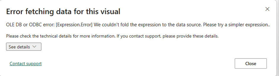 Error – OLE DB or ODBC error: [Expression.Error] We couldn’t fold the expression to the data source. Please try a simpler expression.