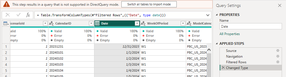 Step 1 – Check the Power Query layer for any additional transformations which are not supported by Databricks. There are no such transformations. We see the “View Native Query” option enabled, which is a way of checking whether the query folded or not. Everything is good in Power Query layer.